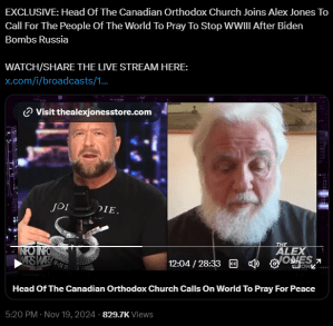 On November 19, 2024, Chemodakov gave a 28-minute interview, of all places, on Alex Jones’ InfoWars X channel. Click below and let him speak for himself.