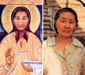 First and most obviously, in an apparent conflation of Orthodoxy with Greek ethnicity (not unusual of Greeks, in my experience), Kelaidis ignores the fact that the Orthodox Church arrived and thrived on North American soil through the missionary efforts of the Russian Church beginning in the 18th century, almost a century and a half before the Greek emigration. The first American Orthodox weren’t immigrants at all, but native Aleuts. The Russian mission to Alaska gained momentum in the 19th century, several decades before the Greek emigration, with the creation of an Aleut alphabet based on the Slavonic, the compilation of a primer of Aleutian grammar, and the translation of key Scriptural and liturgical texts into the Aleutian language. Any photo of 21st-century church life in the OCA’s Alaskan diocese will show virtually all clergy and laity to be indigenous Alaskans. They bury their dead under pre-Christian spirit houses topped with three-barred crosses. They have their own seminary. The OCA recently canonized a Yup’ik clergy wife, St. Olga of Kwethluk (1916-1979).